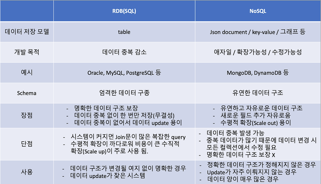 - 하지만 최신 데이터들은 꼭 관계형으로 처리할 필요가 없는 경우도 많고, 다뤄야 하는 데이터의 양도 훨씬 많이 커짐